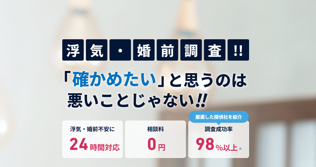 浮気や婚前調査……誰にも相談できず、不安を抱えている方も多いはずです。