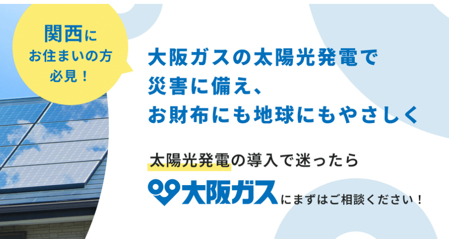 大阪ガスの太陽光発電サービスの評判・口コミ、特徴、メリット・デメリット、向いている人・向いていない人まで、初めて検討する方にもわかりやすく解説します。