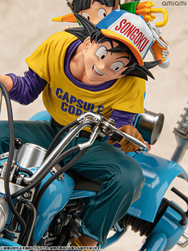 ハンドル握る左腕の筋肉の造形や、かぶりもの・手袋の質感表現から、フィギュア職人の気迫と技術力を感じさせます。まさに、悟空というキャラのエネルギッシュさが立体でも生きている一枚です。