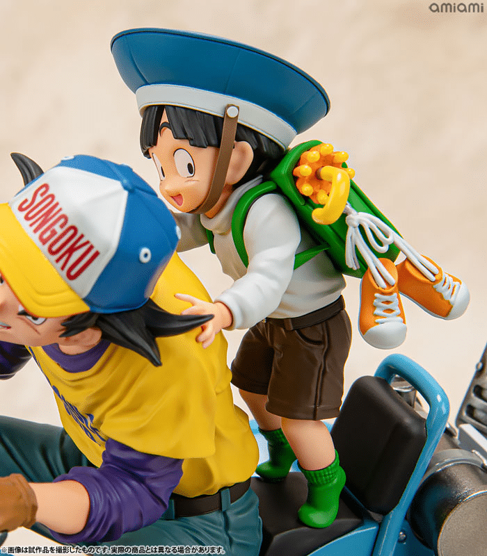 - 孫悟空と悟飯が 二足歩行ロボットに乗っている姿を立体化。アクションと親子の関係性が感じられる構図で、見る人に強い印象を与えるデザインになっています。