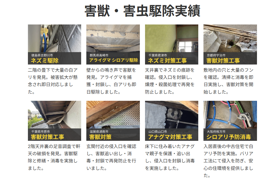 ネズミ・イタチ・アライグマ・シロアリなど幅広く対応