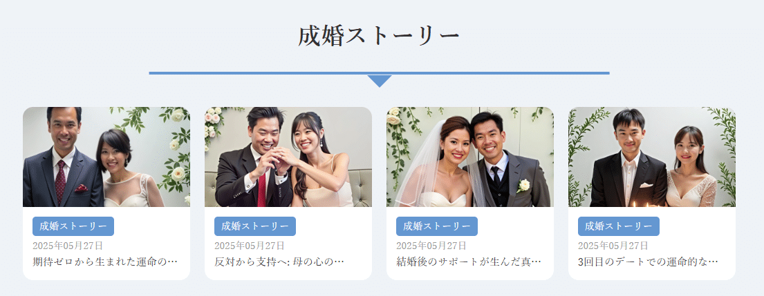 公式サイトでは、成婚ストリートして実例が掲載されています。