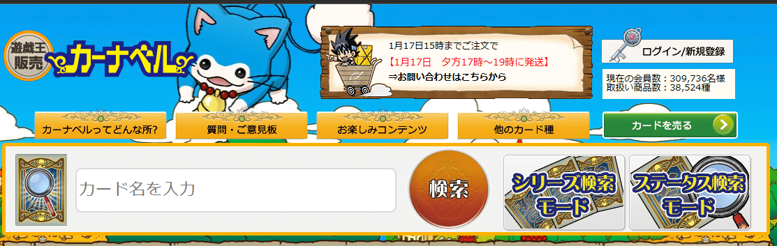 カーナベルは、トレーディングカードの販売(シングル・オリパ等)を中心に、買取なども展開している専門店です。公式ページでは、会員数・取扱い商品数なども公開されています。