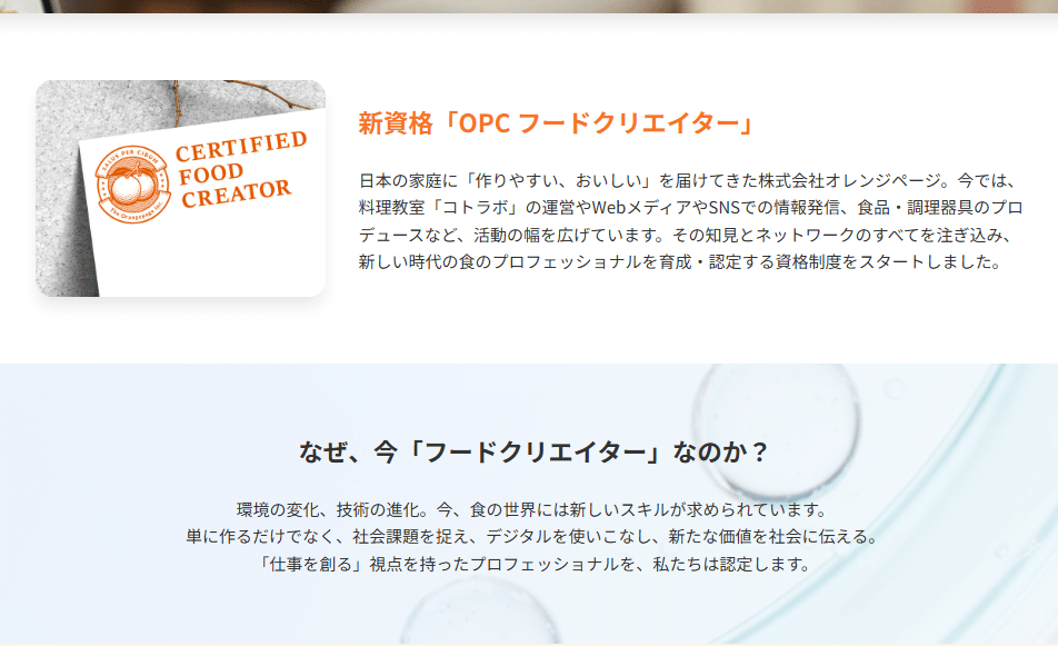 OPCフードクリエイター資格とは、オレンジページが認定する食の資格です。