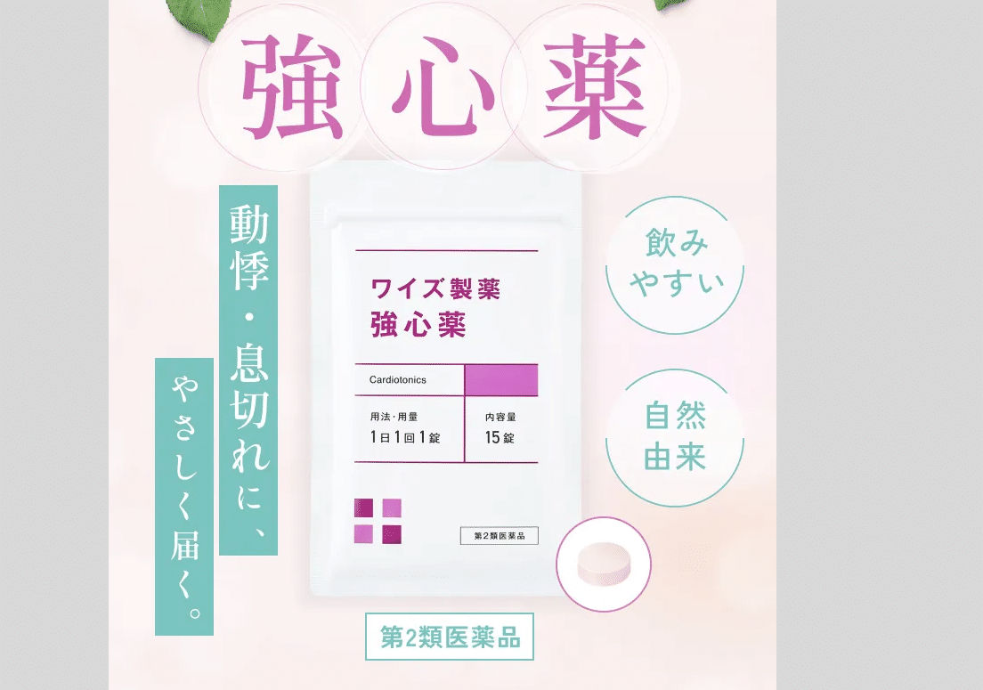 ワイズ製薬「強心薬」は、センソ2mgを1日1回で服用する“続けやすさ”が最大の強み。就寝前の動悸・息切れに不安を抱える更年期世代に試しやすい選択肢です。