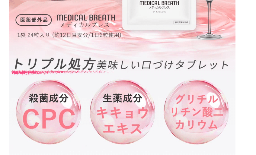 メディカルブレスには、殺菌成分として知られるCPCのほか、キキョウエキスなどが配合されています。