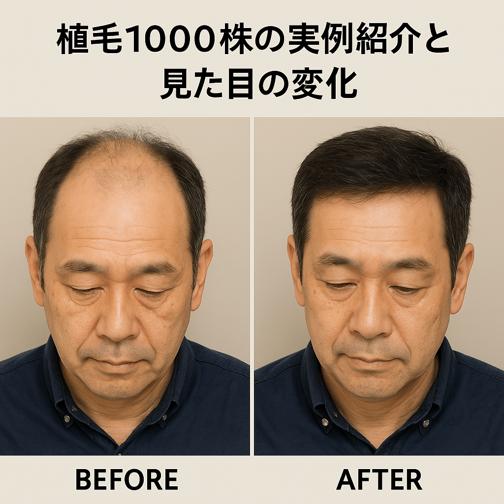 実例を見ると、1000株の植毛は自然な生え際と顔の印象を若返らせる効果が目立ちます。
